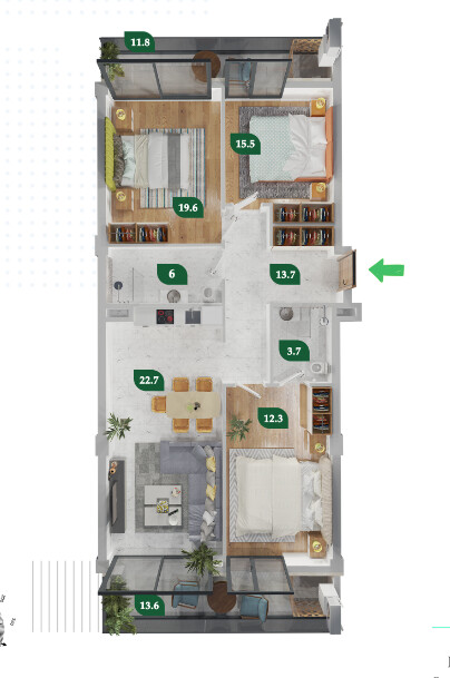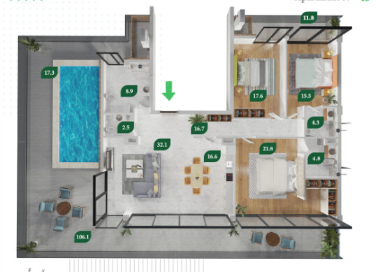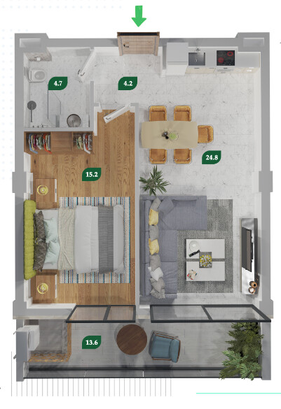 2-room 57,3 м²/85950 $